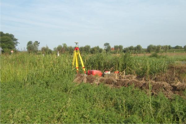 | materializzazione | Centrino metallico del Ministero delle Finanze – Catasto di Cuneo infisso su una chiusa irrigua in cemento armato. |