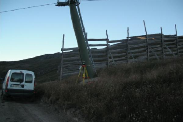 | materializzazione | Centrino metallico della Regione Piemonte murato sul basamento in calcestruzzo del palo della seggiovia. |