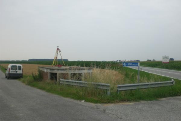 | materializzazione | Centrino metallico della Regione Piemonte infisso sulla soletta di un pozzo irriguo in prossimità di un incrocio. |