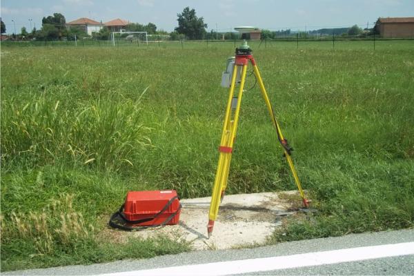 | materializzazione | Centrino metallico della Regione Piemonte infisso su un pozzetto irriguo in cemento, all'incrocio con Via Molinasso. |
