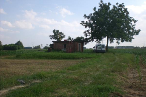 | materializzazione | Centrino metallico della Regione Piemonte infisso su un fabbricato sulla destra a 10 metri dalla strada. |