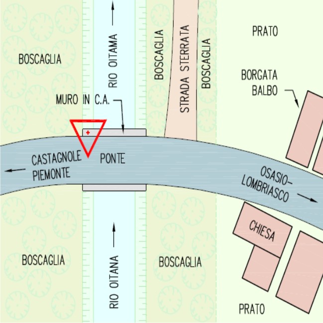 | materializzazione | Centrino metallico Ministero delle Finanze – Catasto di Torino murato sulla sommità del ponte sul lato di valle. |