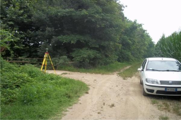 | materializzazione | Centrino metallico della Regione Piemonte murato all'inizio del ponticello in cemento armato. |