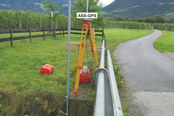 Centrino in ghisa del Catasto di Bolzano infisso sulla sommità del muro di spalla del ponticello sul fiume Adige, lato valle in riva destra, in prossimità della sponda del fiume.