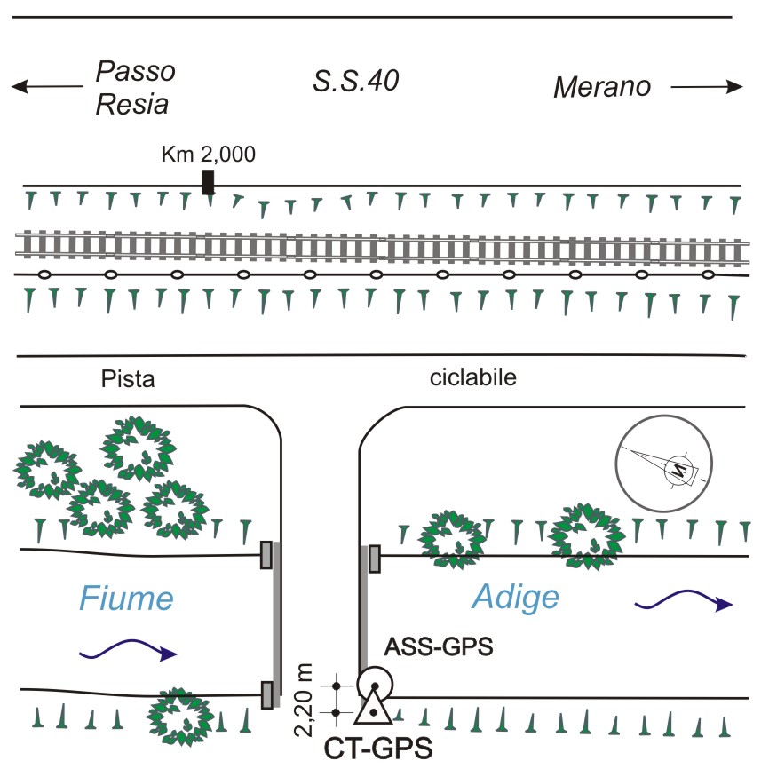 | materializzazione | Centrino universale inox infisso sulla sommità del muro di spalla del ponticello sul fiume Adige, lato a valle in riva destra, in prossimità della testa. |