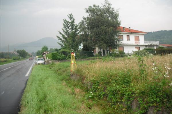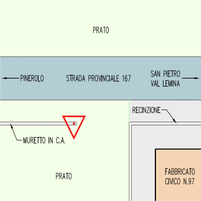 Centrino metallico della Regione Piemonte infisso su un muretto in cemento armato lungo la S.P. 167.