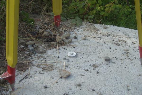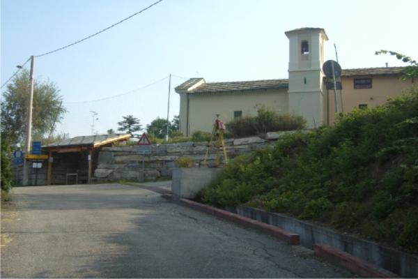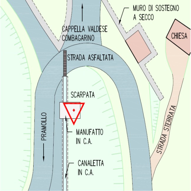 Centrino metallico della Regione Piemonte murato su un pozzetto in cemento armato nei pressi del tornante.