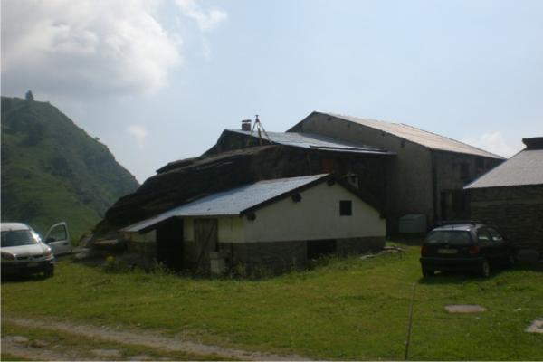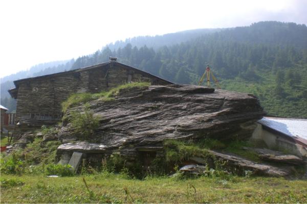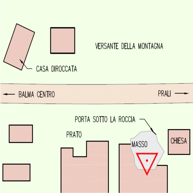 Centrino metallico della Regione Piemonte murato su una roccia affiorante subito a sinistra della strada vicino alle case.