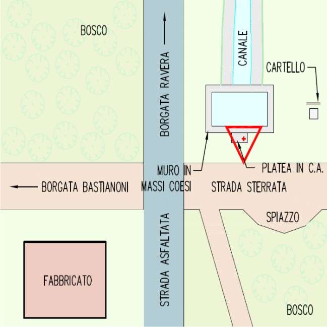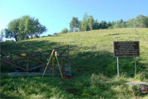 Centrino metallico della Regione Piemonte murato su una platea in cemento armato di un pozzetto.