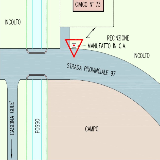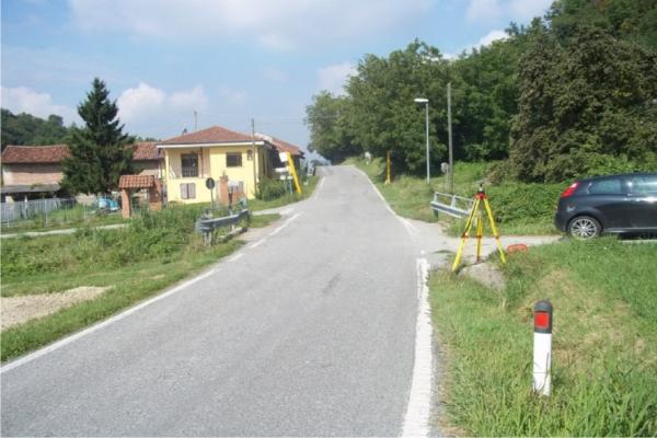 | materializzazione | Centrino metallico della Regione Piemonte murato su un manufatto in cemento armato di fronte al civico 73 della S.P. 97. |