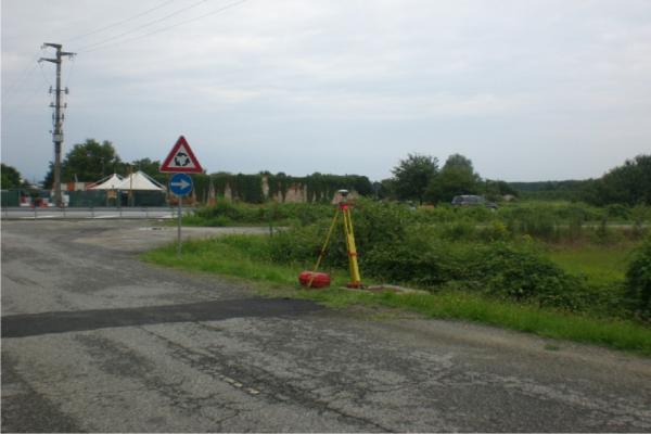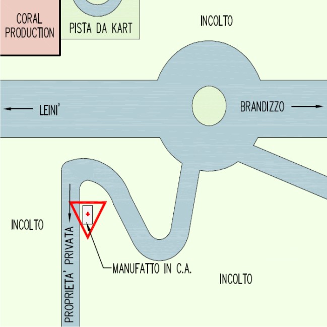Centrino metallico della Regione Piemonte murato su un tombino nella strada privata di fronte al fabbricato "Coral Production", subito dopo la rotonda.