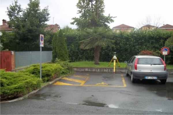 Centrino metallico del Ministero delle Finanze – Catasto di Torino infisso su un muretto in cemento armato nell'angolo nord/ovest di Piazza Don Amedeo.