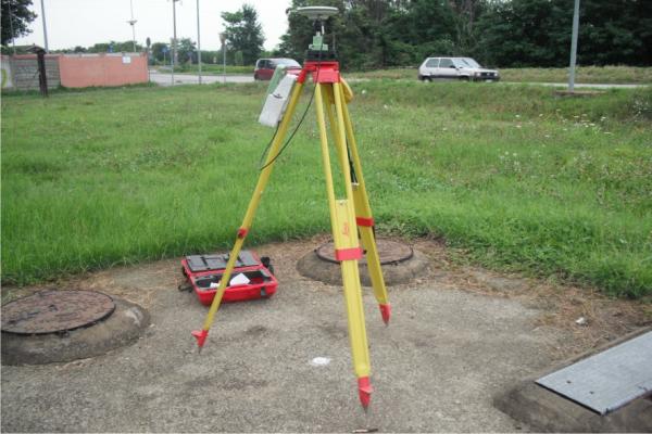 | materializzazione | Centrino metallico della Regione Piemonte infisso su una platea in cemento armato dei pozzi della fognatura. |