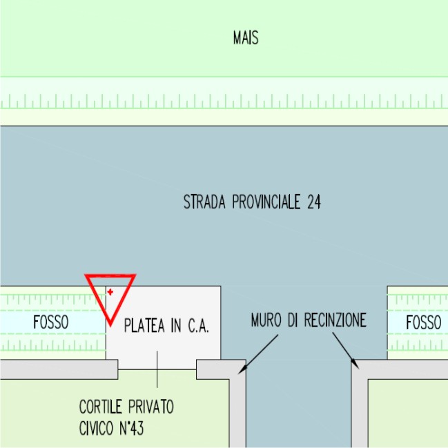 | materializzazione | Centrino metallico della Regione Piemonte infisso su una platea in cemento armato su un fosso a fianco della S.P. 24. |