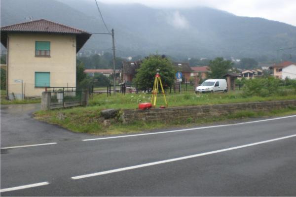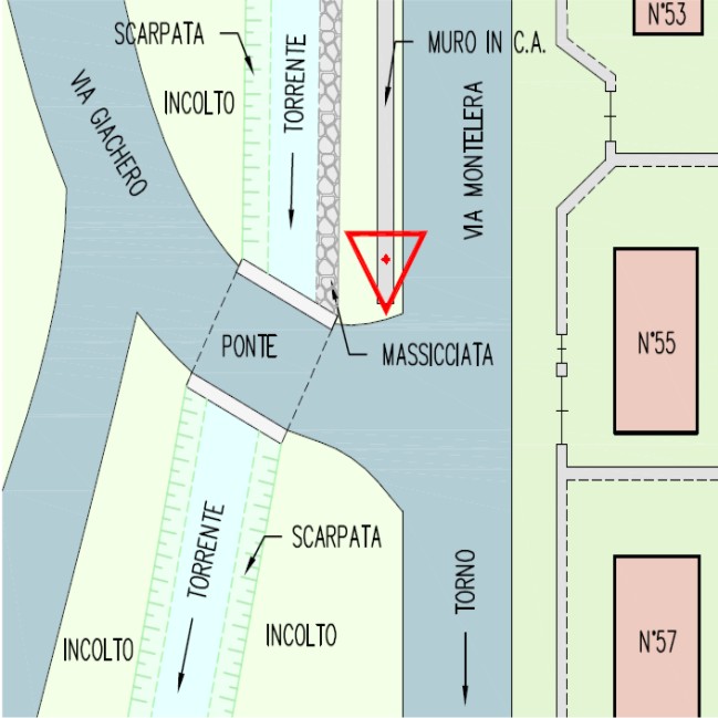 Centrino metallico della Regione Piemonte infisso sulla sommità del muro in cemento armato nei pressi del ponticello.