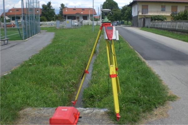 Centrino metallico della Regione Piemonte infisso sulla soletta di un attraversamento di un fosso nei pressi dell'incrocio.