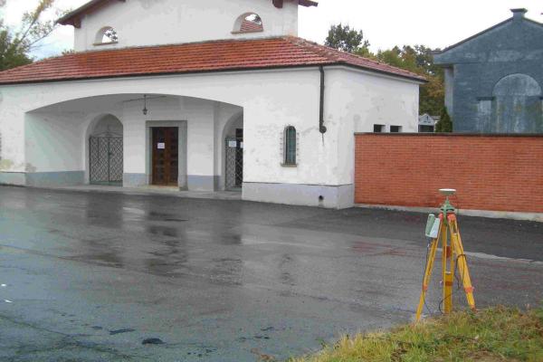 Centrino metallico del Ministero delle Finanze – Catasto di Torino infisso sul muro in cemento armato del piazzale del cimitero.