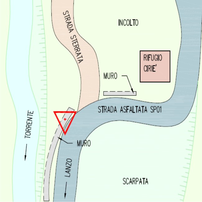| materializzazione | Centrino metallico della Regione Piemonte infisso su un muro di sostegno del tornante prima del rifugio. |