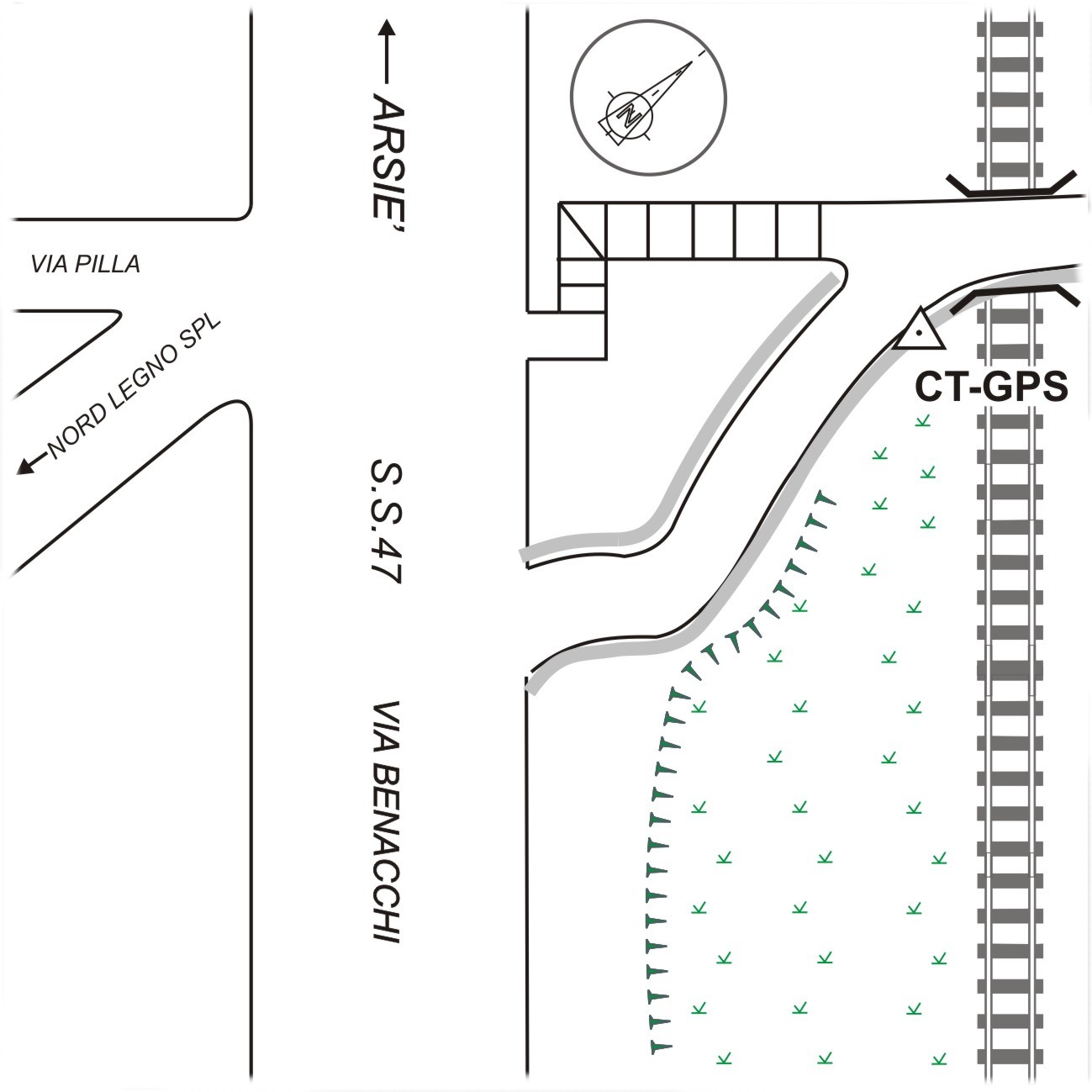 | materializzazione | Centrino universale infisso sulla sommità del muro di contenimento della stradina, che dalla statale conduce al ponte sulla ferrovia, il punto si trova a destra fra gli ultimi due paracarri. |