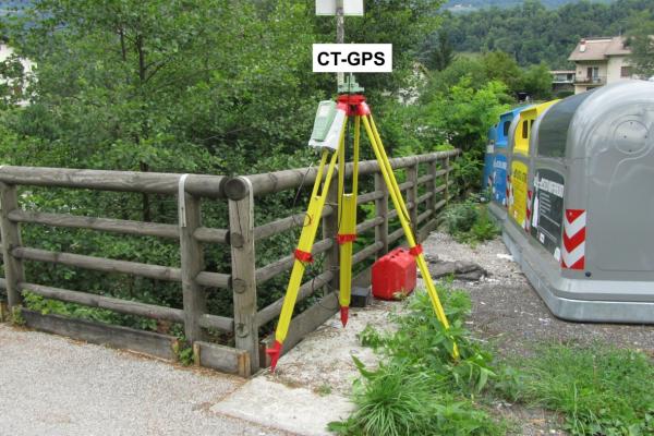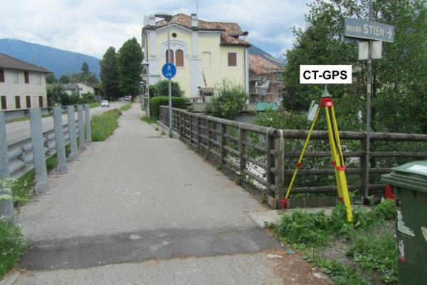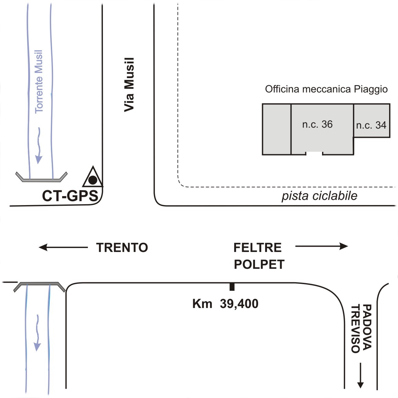 | materializzazione | Centrino in acciaio inox del tipo "GPS-C" infisso sulla spalla in cemento armato del ponte sul torrente Musil, angolo via Musil. |
