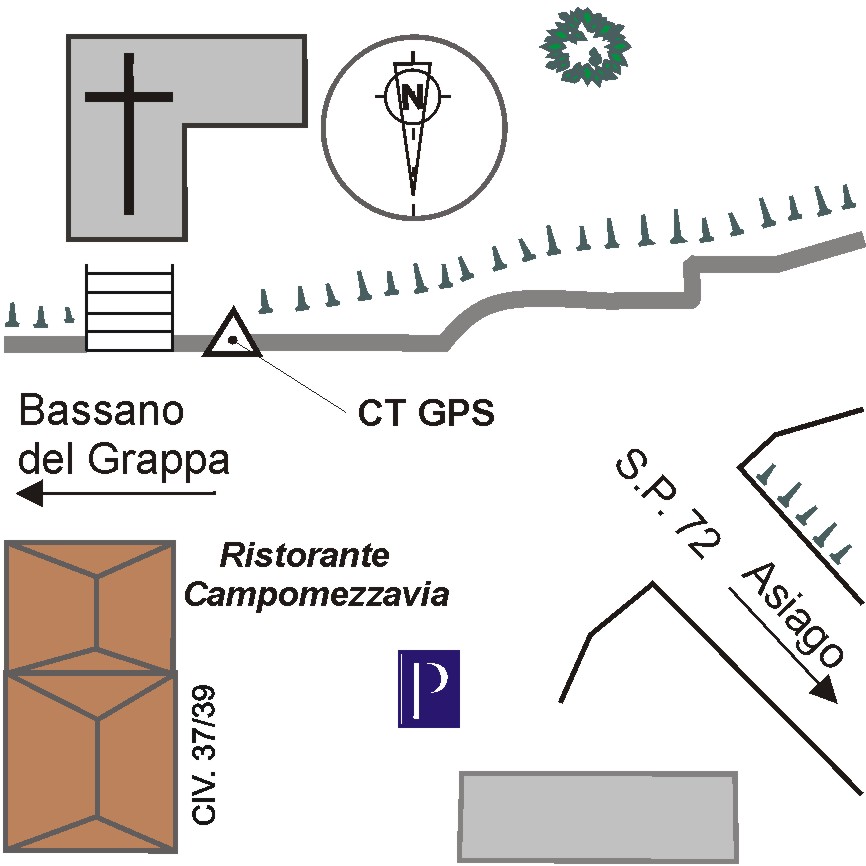 | materializzazione | Centrino universale infisso sul muro a retta del guard-rail, a destra della scala di accesso alla chiesetta di S. Gaetano, di fronte al ristorante "Campomezzavia", al civico 39. |
