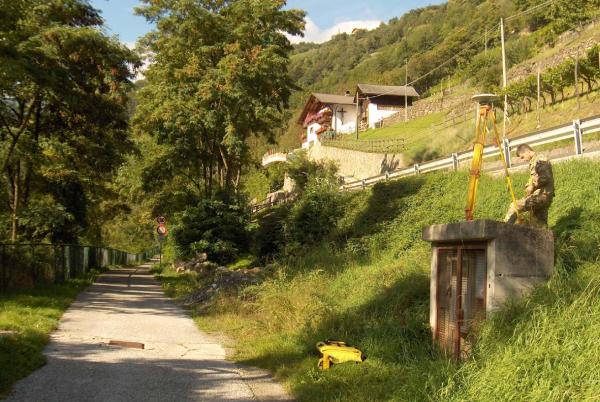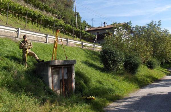 Centrino universale infisso sulla copertura in cemento del casottodi un quadro elettrico per le pompe di un acquedotto, posto a fianco di una pista ciclabile.
