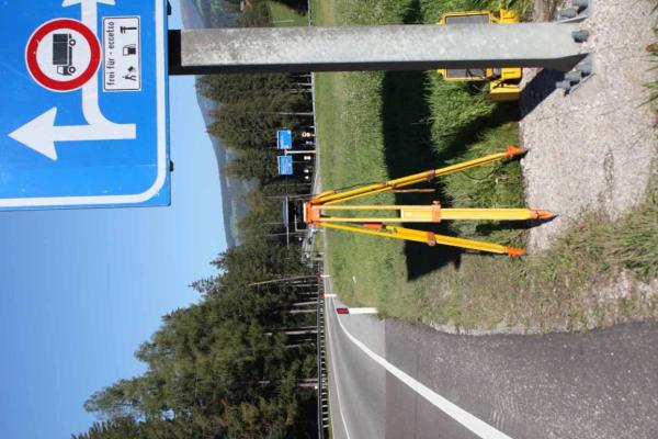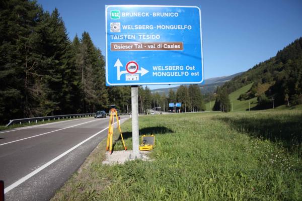 | materializzazione | Centrino universale inox infisso sul basamento in cemento armato del segnale stradale posto al lato destro della S.S. 49 da Dobbiaco a Brunico, in prossimità del fiume Rienza. |