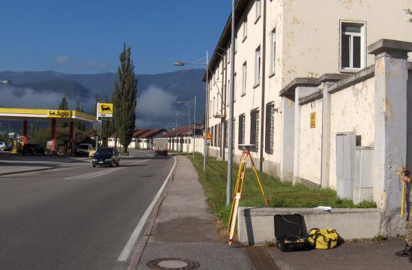 Centrino in acciaio inox del tipo "GPS C" infisso sul muro in cemento armato posto in corrispondenza dello spigolo est della caserma Enrico F.