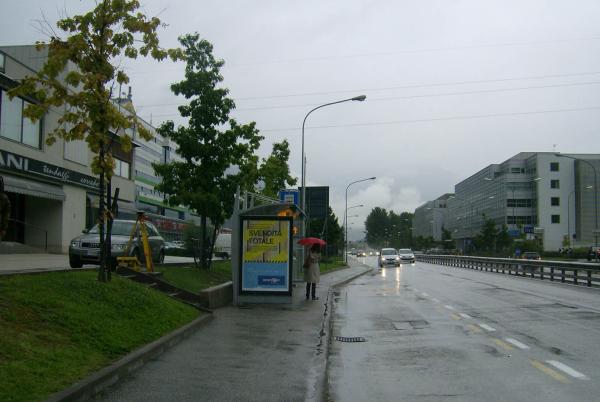 | materializzazione | Centrino universale infisso sul basamento in cemento di un pozzetto, a destra scendendo la scala che porta alla pensilina della fermata dell'autobus, di fronte al civico 330 di via Brennero, in prossimità del centro commerciale Bren Center. |