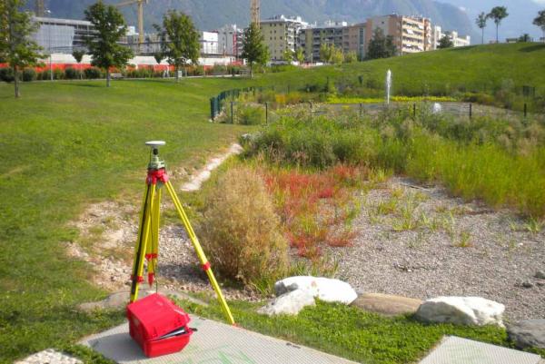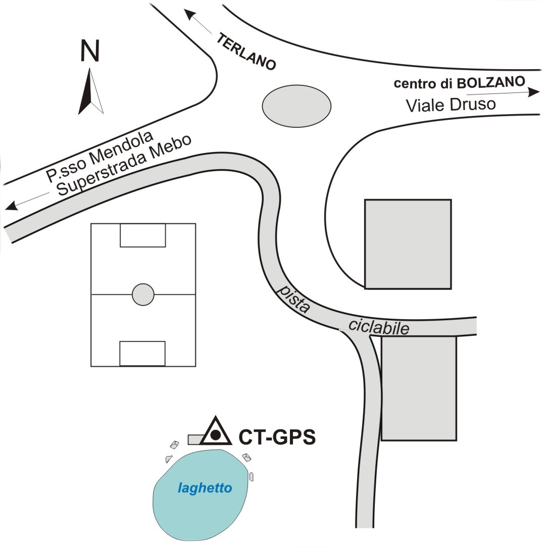 Centrino universale infisso sul cordolo del tombino in cemento armato nel Parco pubblico, a nord del piccolo laghetto, nei pressi della rotonda via Merano, via Castel Firmiano.
