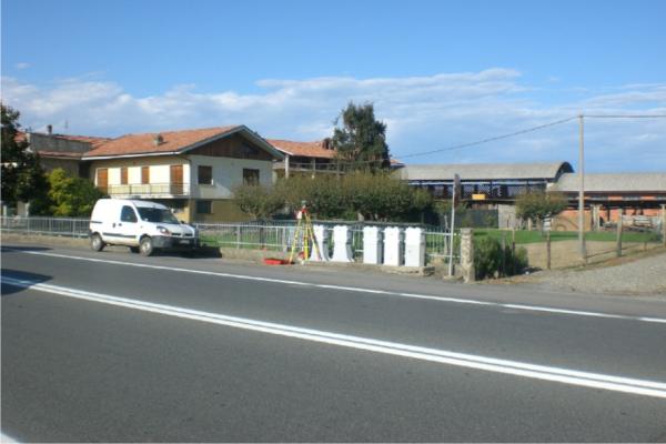 | materializzazione | Centrino metallico della Regione Piemonte infisso sul basamento in cemento armato di 5 cabine di distribuzione ENEL. |