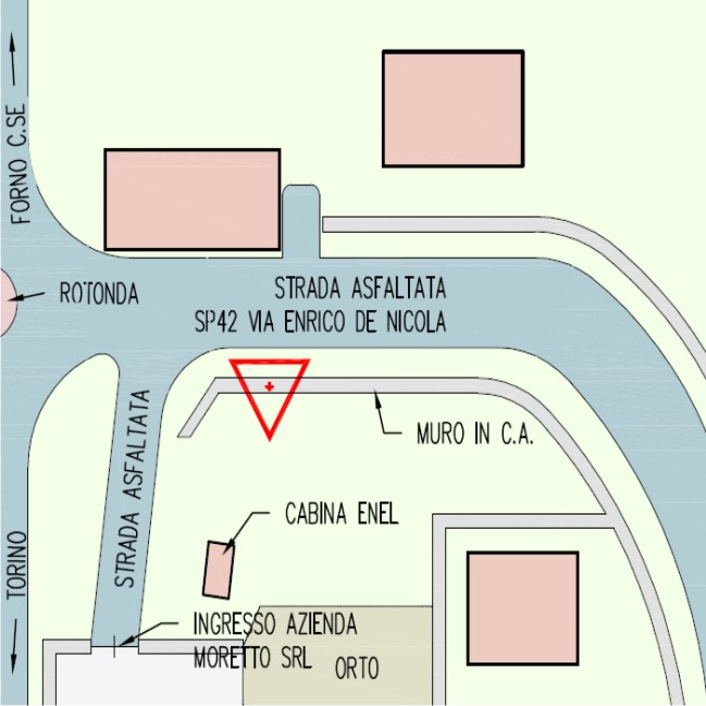 | materializzazione | Centrino metallico della Regione Piemonte infisso su muro di sostegno in cemento armato in Via De Nicola (S.P.42). |