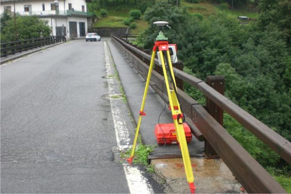 Centrino metallico della Regione Piemonte infisso sulla soletta del ponte, nelle cui vicinanze si trova anche un centrino del Catasto.
