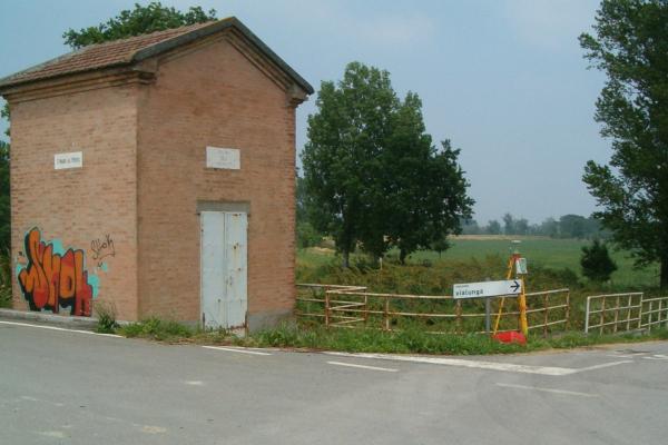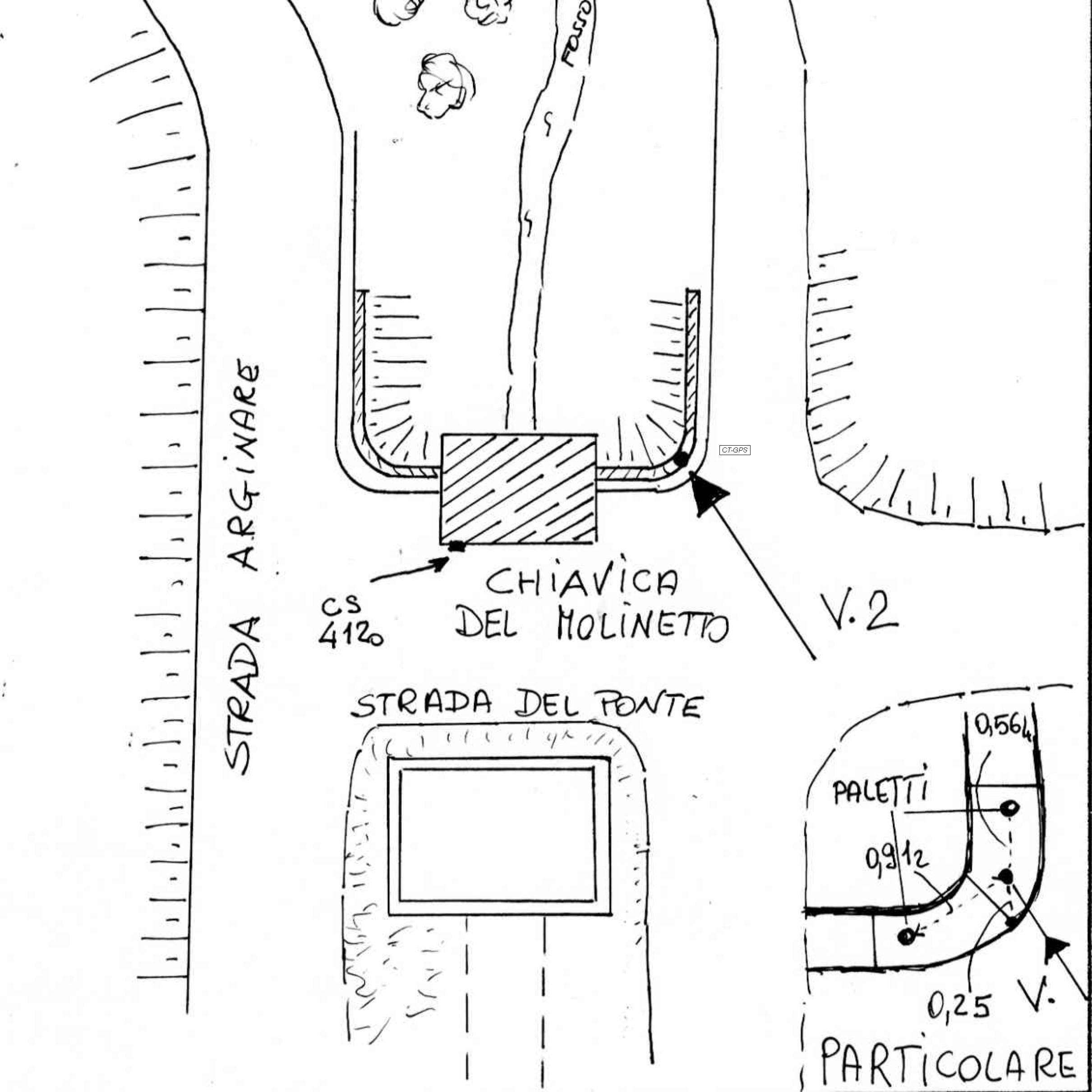 | materializzazione | Centrino metallico infisso sul cordolo in cemento armato della chiavica del Molinetto sito nella strada del Ponte. |