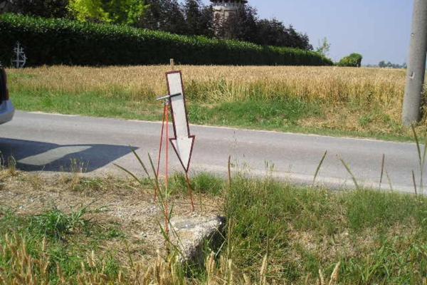 | materializzazione | Centrino metallico infisso su un sifone in cemento armato, il più a est dei due, poco prima dell'ingresso a Mantellina. |