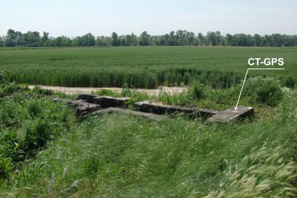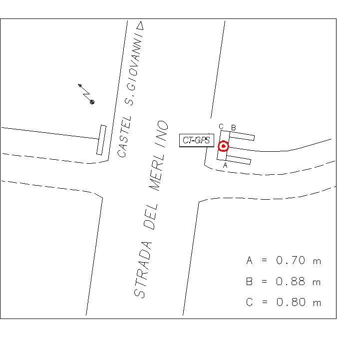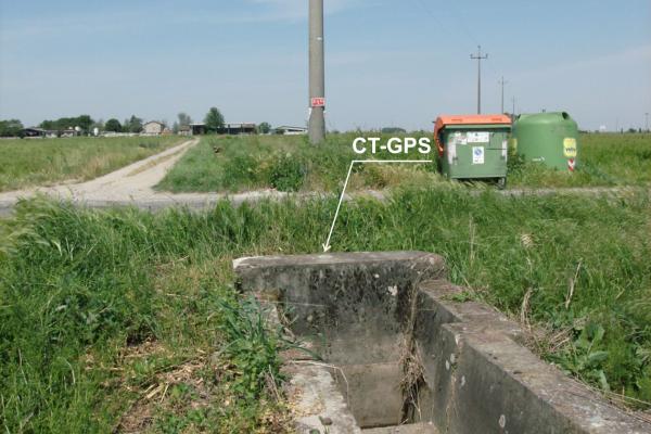 Centrino metallico infisso su grossa chiavica in cemento presso il bordo est della Strada del Merlino all'incrocio con la strada per la Località Bardoneggia Superiore.