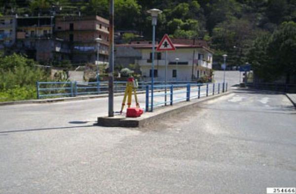 Centrino metallico infisso su marciapiede spartitraffico in Piazza Roma, nelle immediate vicinanze di Via Busceti su S.P. 6, nel comune di San Roberto.