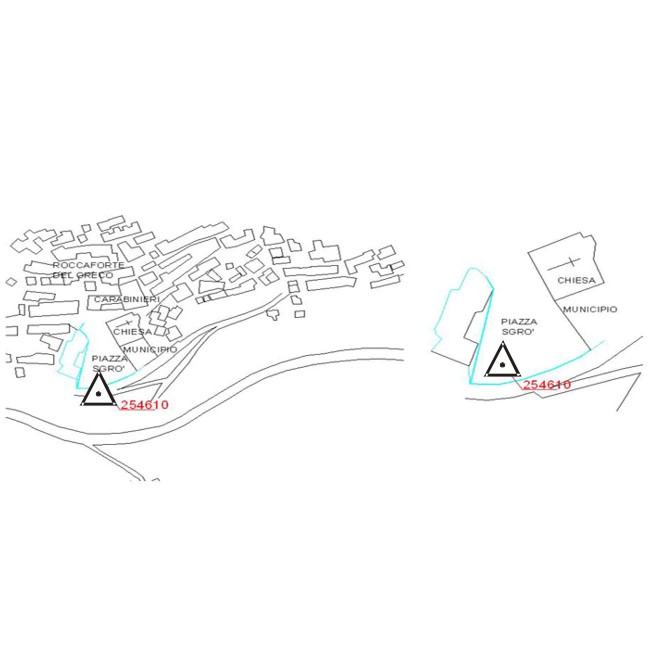 | materializzazione | Centrino metallico infisso nei pressi del Municipio di Roccaforte Del Greco, in Piazza Sgrò. |