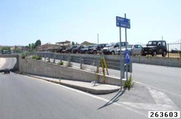 | materializzazione | Centrino metallico infisso nella parte iniziale del muro di sostegno di un cavalcavia. |