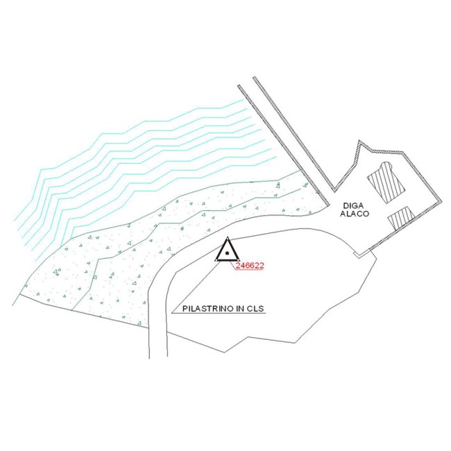 | materializzazione | Centrino metallico infisso su testa di pilastrino in cemento, ricoperto da tubo corrugato nero. |