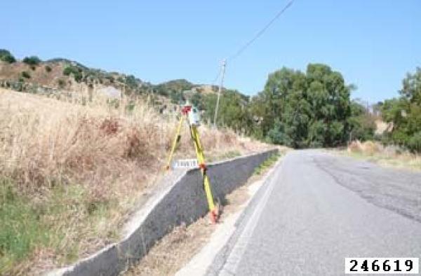 Centrino metallico infisso su muro di sostegno in calcestruzzo.