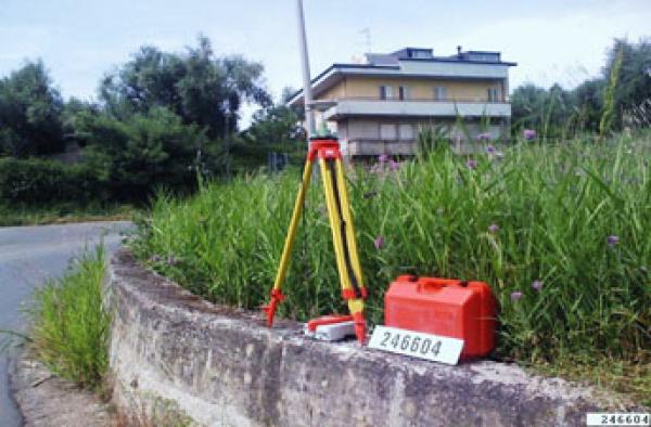 | materializzazione | Centrino metallico infisso su muro di contenimento in calcestruzzo a bordo strada. |