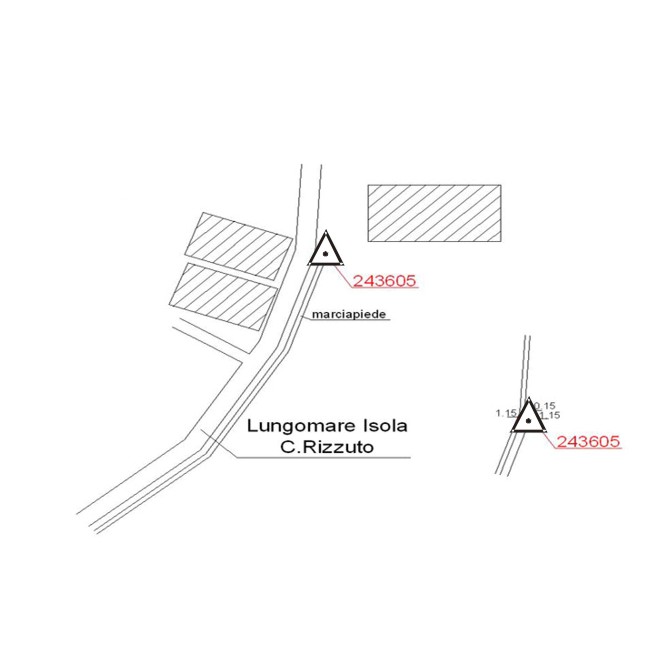 | materializzazione | Centrino metallico infisso su marciapiede del lungomare. |