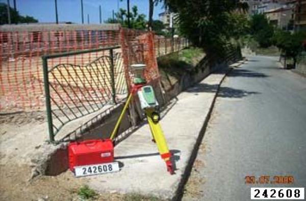 Centrino metallico infisso su marciapiede in cemento.