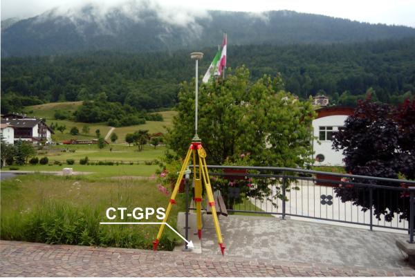 Centrino in acciaio inox del tipo "universale", infisso sul cordolo in cemento armato della ringhiera delle rampe di accesso agli impianti sportivi di Andalo.