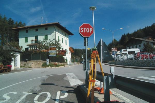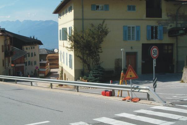 Centrino universale infisso alla sommità del muro a retta di valle in cemento armato della statale posto in prossimità della testa rivolta a Passo Palade.