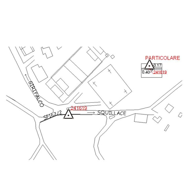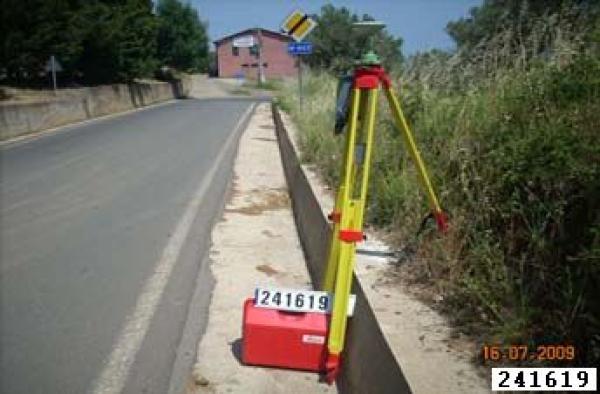 | materializzazione | Centrino metallico infisso su un cordolo di cunetta in calcestruzzo a bordo strada. |