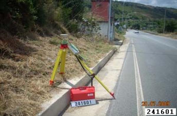 | materializzazione | Centrino metallico infisso su cordolo di cunetta in cemento a bordo strada. |