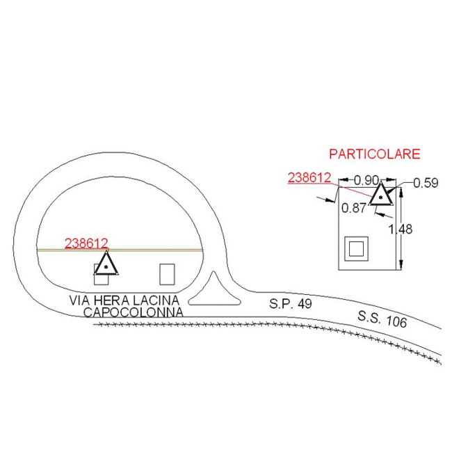 | materializzazione | Centrino metallico infisso su pozzetto ENEL in calcestruzzo. |