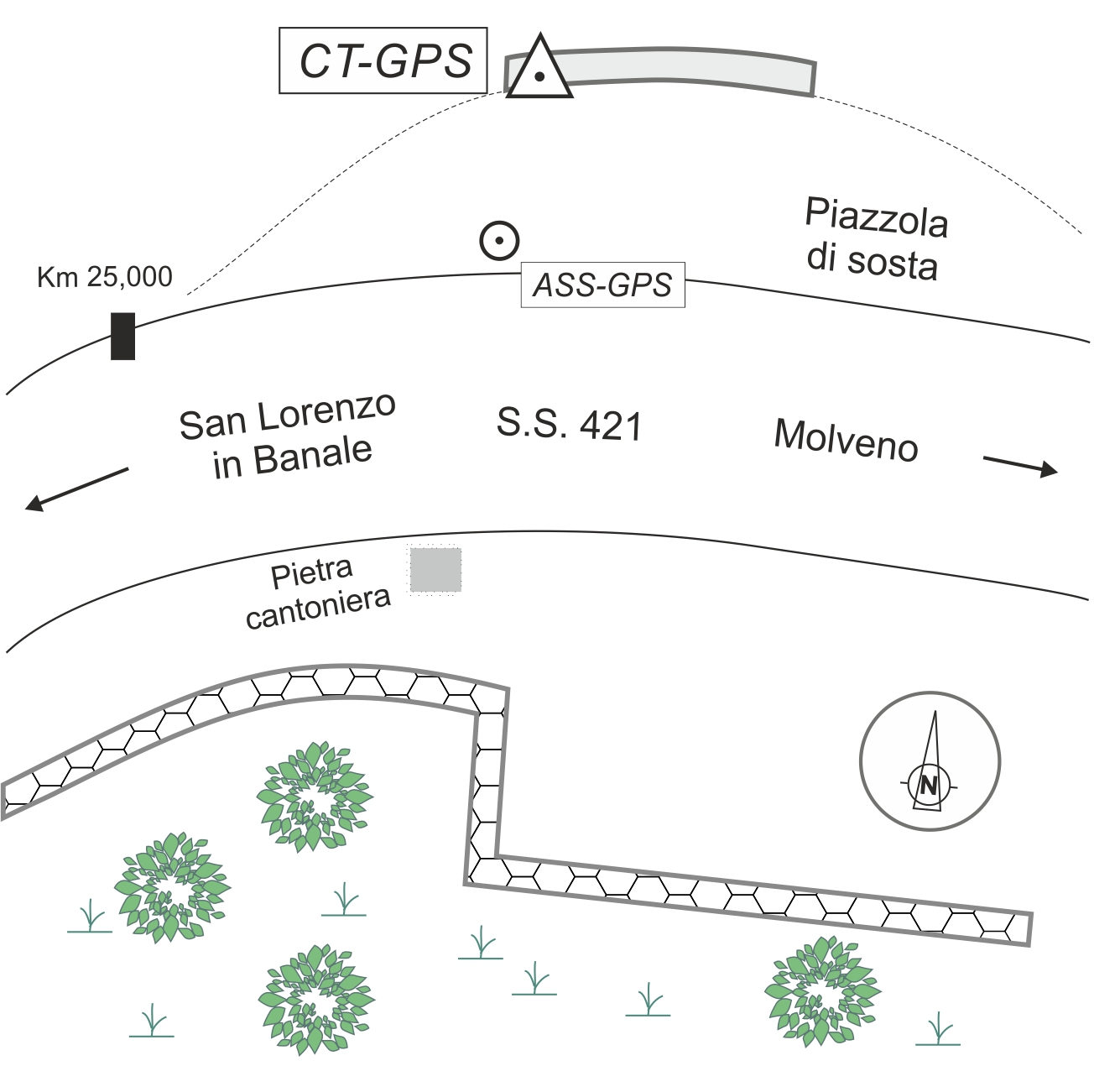| materializzazione | Centrino in acciaio inox del tipo "universale", infisso su un muro di sostegno in cemento armato posto sul lato sinistro direzione Molveno, in una piazzola di sosta a valle della S.S. 421, dopo il Km 25,000. |
